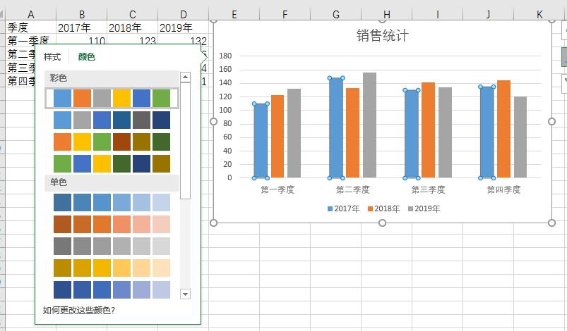 如今的这些烦恼都已经解决了,图表鲜亮风格一键选择,除了数据是你需要填写的以为,其他的都是可视化操作哦,需要什么就改什么,都有方便的预设方案哦,位置也很明显。我们以简单的柱状图为例,Excel中生成也很方便,但是我们要添加或者修改图表就比较繁琐,不直观。