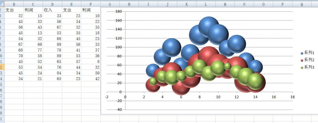 我们总要制作各种各样的图表,根据不同的数据我们会选择不同的图表,比如我们需要对比一定会选择柱状图或者条形图,如果要看百分比一定会选择饼状图或者换状图,用各种可视化的图表来直观的体现我们的数据,散点图这个比较小众,虽然也会用到,但是用到的场景并不多,然而气泡图算是散点图的一种升级版,它与散点图类似,散点图是用对比xy两组数据,而气泡图是三个值做比较,这样的话散点图就不能满足我们的需求了,比如我们对比收入和支出,那么我们不需要气泡图,散点图就完全可以满足需求,但是我们要加一组利润,这样散点图就不能很好的体现了,因此我们就引入了气泡图