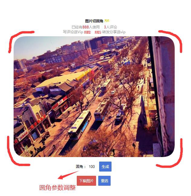 左侧图为无圆角原图,看着是不是锋利刻板,不管是拼图还是编辑排版放在网页中,都略显突兀,经管图片本身效果不错,但是因为没有用到圆角设计,跟有圆角设计的图片放在一起总是会逊色不少,右图为圆角化的图片,四角经过明显圆化处理,是不是一眼望去,感觉舒服了很多,如果你选择图片,是不是也会觉得右侧的图更好一些,图下面的数字就是设置圆角的数值,数值越大弧度越大。