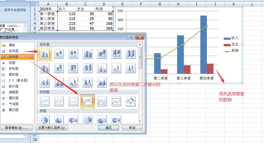 柱状图和折线图大家都不陌生,但是这个复合图其实也很好理解,就是一部分是柱状图,一部分用折线图,也就是柱状折线混合图 ,这样就可以更好的反映出同比和趋势,不需要制作两只或者多张表格,这样更简洁,看起来更方便,图表除了自己更好的统计数据,那就是让领导更好的了解企业情况,好了废话不多说,来看看咱们传统的office是如何制作复合图的,首先把数据填好,然后进行柱状图生成,然后在柱状图里找到自己需要变成折线图的数据,在进行调整,说实话这个功能还是小编现学的,因为之前一直用不到,说实话还是有些麻烦的。